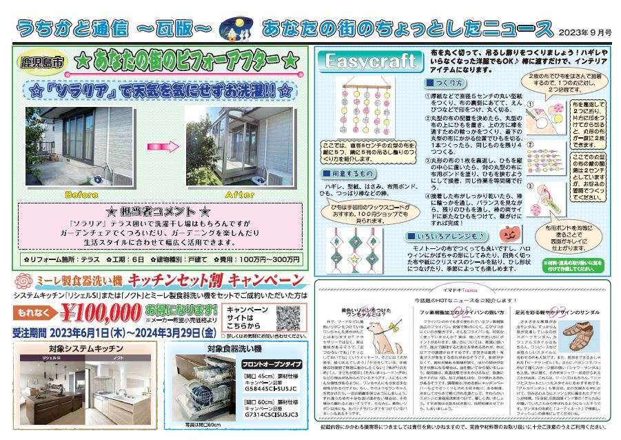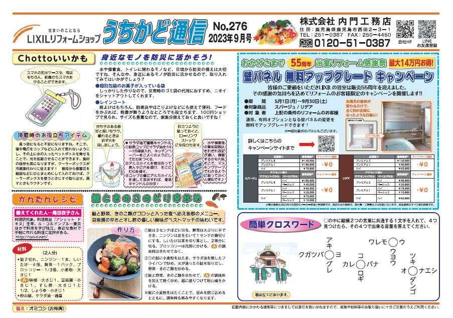 今月もカラーのうちかど通信9月号をどうぞ!!