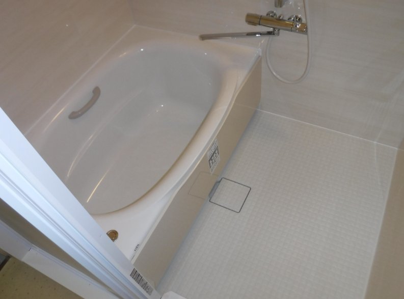 マンション浴室リフォームをご紹介いたします。LIXIL / システムバスルーム リノビオVシリーズ 1216サイズ 【サーモバスS】浴槽保温材と保温組フタの『ダブル保温』構造でお湯が冷めにくくなりました。【キレイサーモフロア・くるりんポイ排水口】寒い冬場でも冷ヤッとしない床材で、面倒なお手入れやお掃除がラクになりました。 工事金額 ¥1,590,000(材工共)